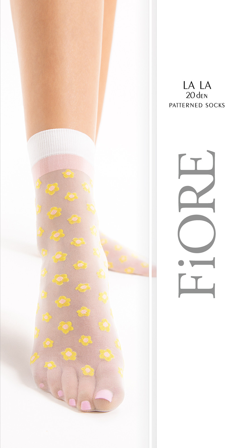 20 denier ankle socks with a delicate flower pattern and comfortable top, with sandal toe.