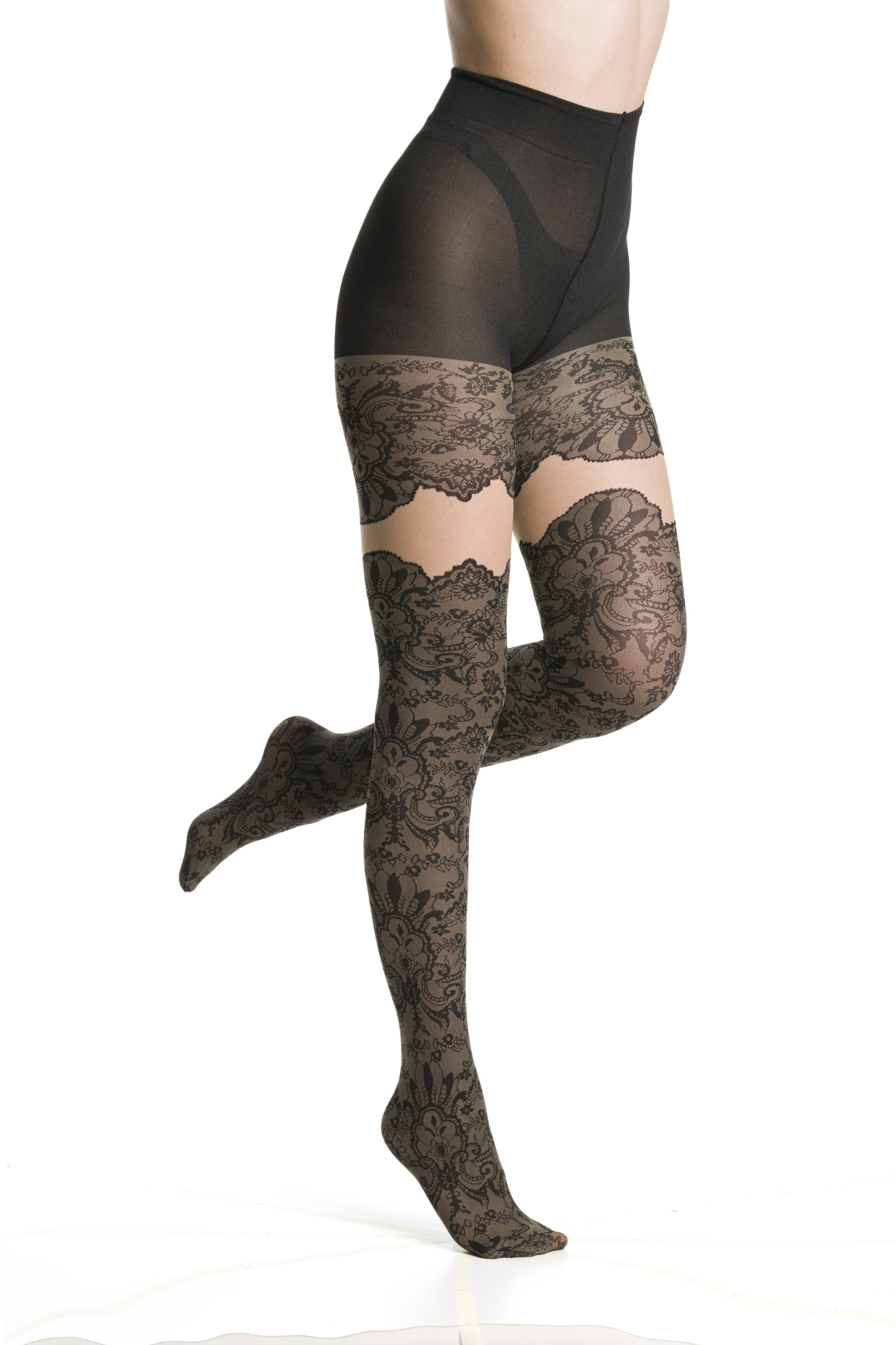 Collant effetto calza con dettagli velati sensuali e motivo in pizzo. 20 den/50 den